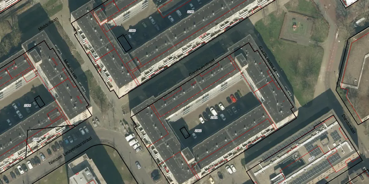Het perceel waarop Gasthuisstraat 33 staat heeft een oppervlakte van 3796 m². Dit is een zeer groot perceel. De perceeloppervlakte wordt geregistreerd door het Kadaster. Gedetailleerde informatie over de maten van dit perceel kunt u vinden in het rapport Kadastrale kaart met maatvoering van Gasthuisstraat 33.