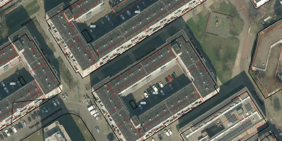 Het perceel waarop Gasthuisstraat 59 staat heeft een oppervlakte van 3796 m². Dit is een zeer groot perceel. De perceeloppervlakte wordt geregistreerd door het Kadaster. Gedetailleerde informatie over de maten van dit perceel kunt u vinden in het rapport Kadastrale kaart met maatvoering van Gasthuisstraat 59.