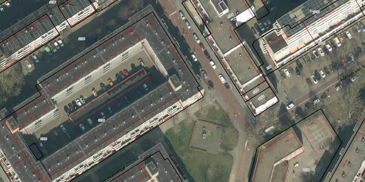Het perceel waarop Gasthuisstraat 90 staat heeft een oppervlakte van 5983 m². Dit is een zeer groot perceel. De perceeloppervlakte wordt geregistreerd door het Kadaster. Gedetailleerde informatie over de maten van dit perceel kunt u vinden in het rapport Kadastrale kaart met maatvoering van Gasthuisstraat 90.