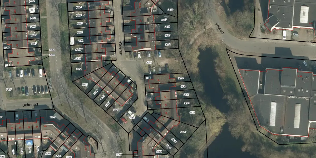 Geererf 18 is gelegen op kadastraal perceel BDA00H9632. Deze kadastrale aanduiding is uniek en wordt gebruikt door het Kadaster om eigendomsrechten en andere zakelijke rechten vast te leggen. Het perceel maakt onderdeel uit van de kadastrale gemeente Breda.