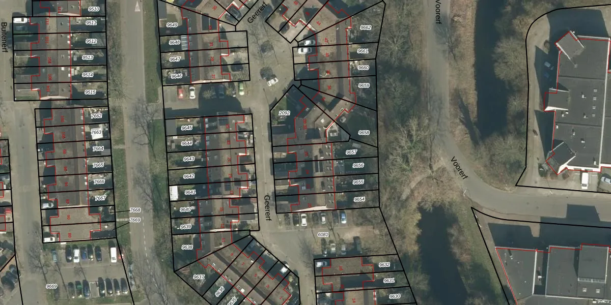 Het perceel waarop Geererf 26 staat heeft een oppervlakte van 185 m². Dit is een middelgroot perceel. De perceeloppervlakte wordt geregistreerd door het Kadaster. Gedetailleerde informatie over de maten van dit perceel kunt u vinden in het rapport Kadastrale kaart met maatvoering van Geererf 26.