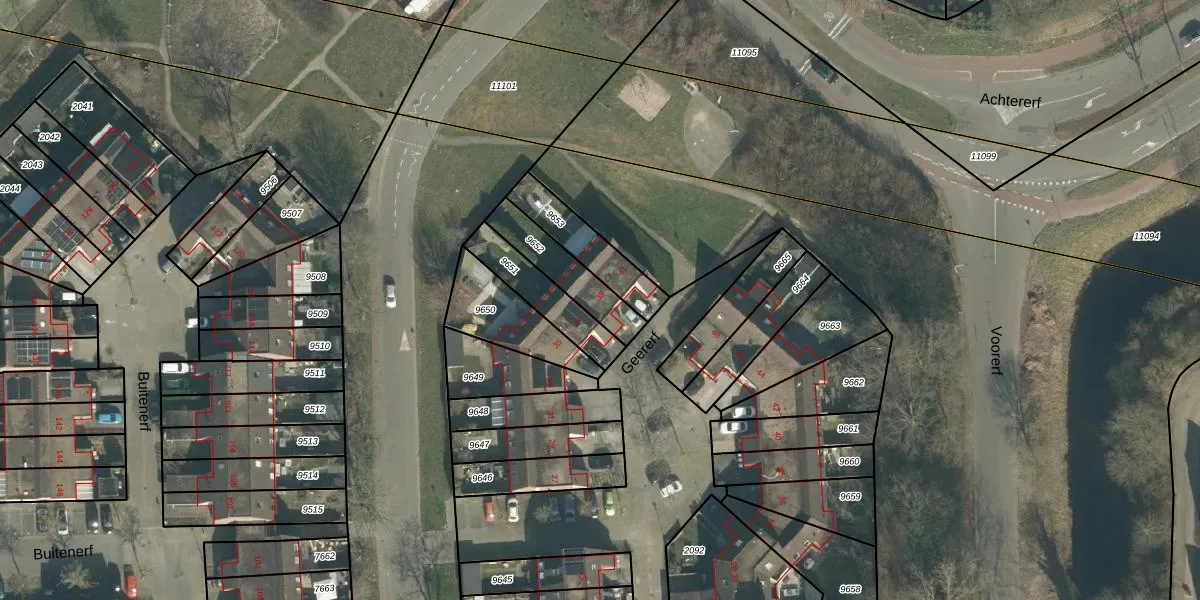 Het perceel waarop Geererf 39 staat heeft een oppervlakte van 170 m². Dit is een middelgroot perceel. De perceeloppervlakte wordt geregistreerd door het Kadaster. Gedetailleerde informatie over de maten van dit perceel kunt u vinden in het rapport Kadastrale kaart met maatvoering van Geererf 39.