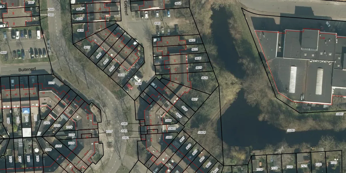 Het perceel waarop Geererf 8 staat heeft een oppervlakte van 211 m². Dit is een middelgroot perceel. De perceeloppervlakte wordt geregistreerd door het Kadaster. Gedetailleerde informatie over de maten van dit perceel kunt u vinden in het rapport Kadastrale kaart met maatvoering van Geererf 8.