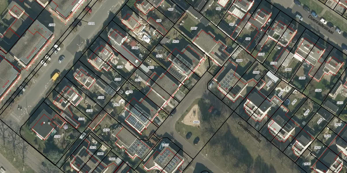 Geisterenstraat 13 is gelegen op kadastraal perceel GNK02M2672. Deze kadastrale aanduiding is uniek en wordt gebruikt door het Kadaster om eigendomsrechten en andere zakelijke rechten vast te leggen. Het perceel maakt onderdeel uit van de kadastrale gemeente Ginneken.
