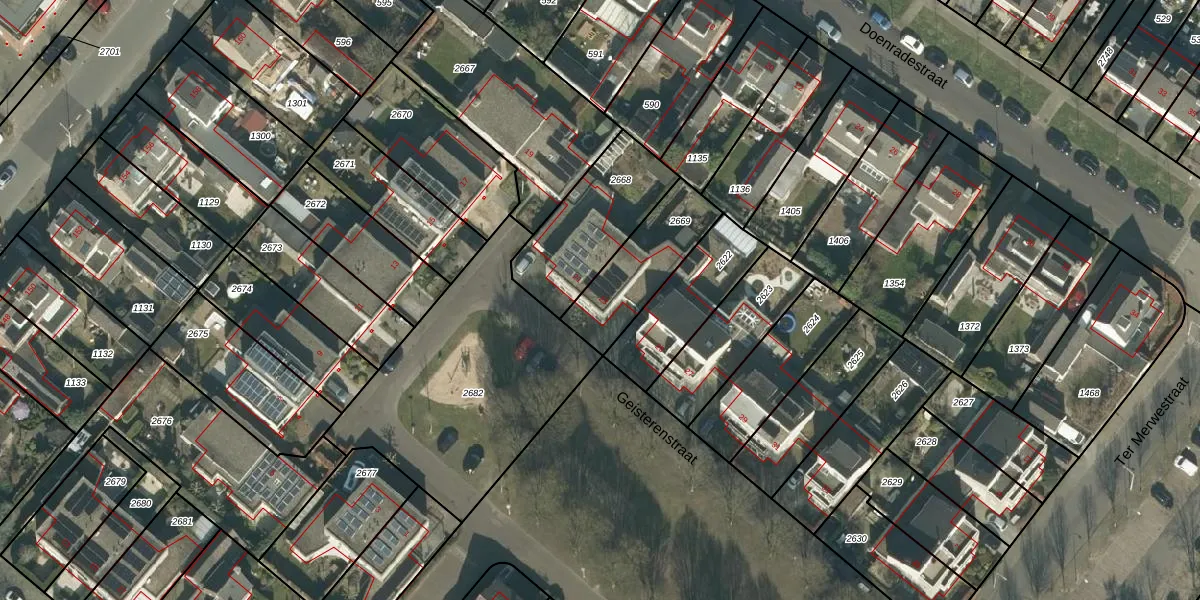 Geisterenstraat 23 is gelegen op kadastraal perceel GNK02M2669. Deze kadastrale aanduiding is uniek en wordt gebruikt door het Kadaster om eigendomsrechten en andere zakelijke rechten vast te leggen. Het perceel maakt onderdeel uit van de kadastrale gemeente Ginneken.