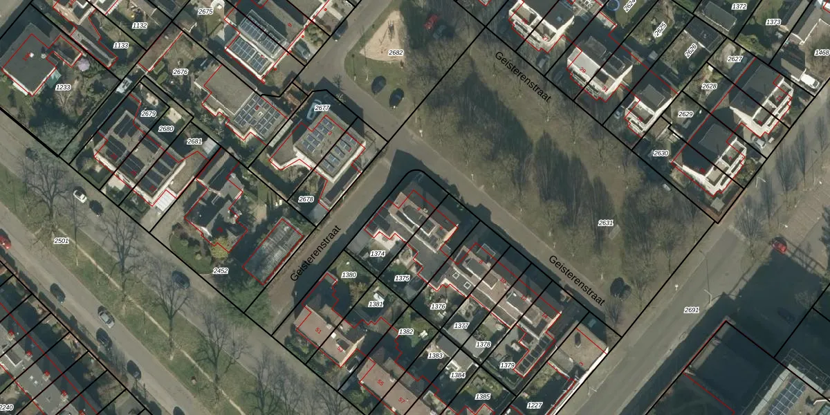 Geisterenstraat 4 is gelegen op kadastraal perceel GNK02M1374. Deze kadastrale aanduiding is uniek en wordt gebruikt door het Kadaster om eigendomsrechten en andere zakelijke rechten vast te leggen. Het perceel maakt onderdeel uit van de kadastrale gemeente Ginneken.