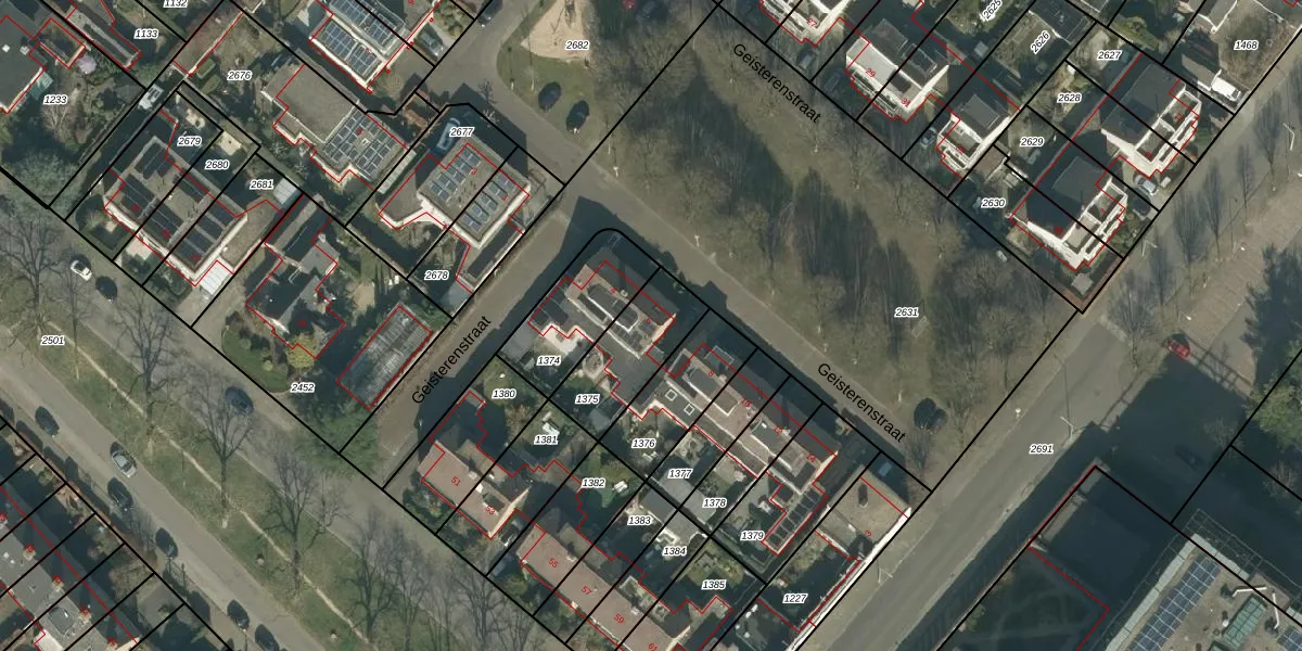 Geisterenstraat 6 is gelegen op kadastraal perceel GNK02M1375. Deze kadastrale aanduiding is uniek en wordt gebruikt door het Kadaster om eigendomsrechten en andere zakelijke rechten vast te leggen. Het perceel maakt onderdeel uit van de kadastrale gemeente Ginneken.