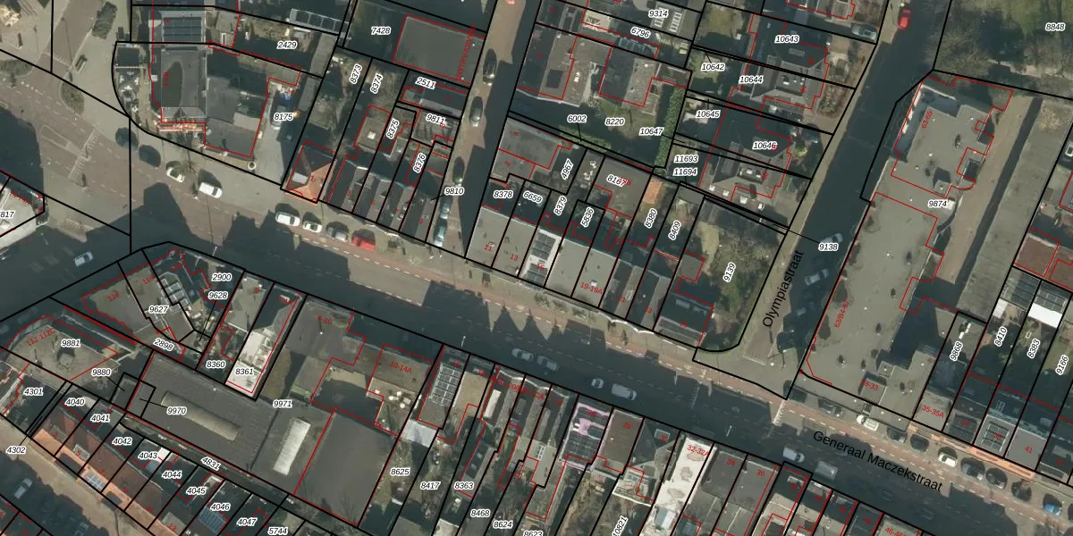Gebruik de zoekbalk of klik op een perceel voor informatie over de adressen binnen dit perceel.