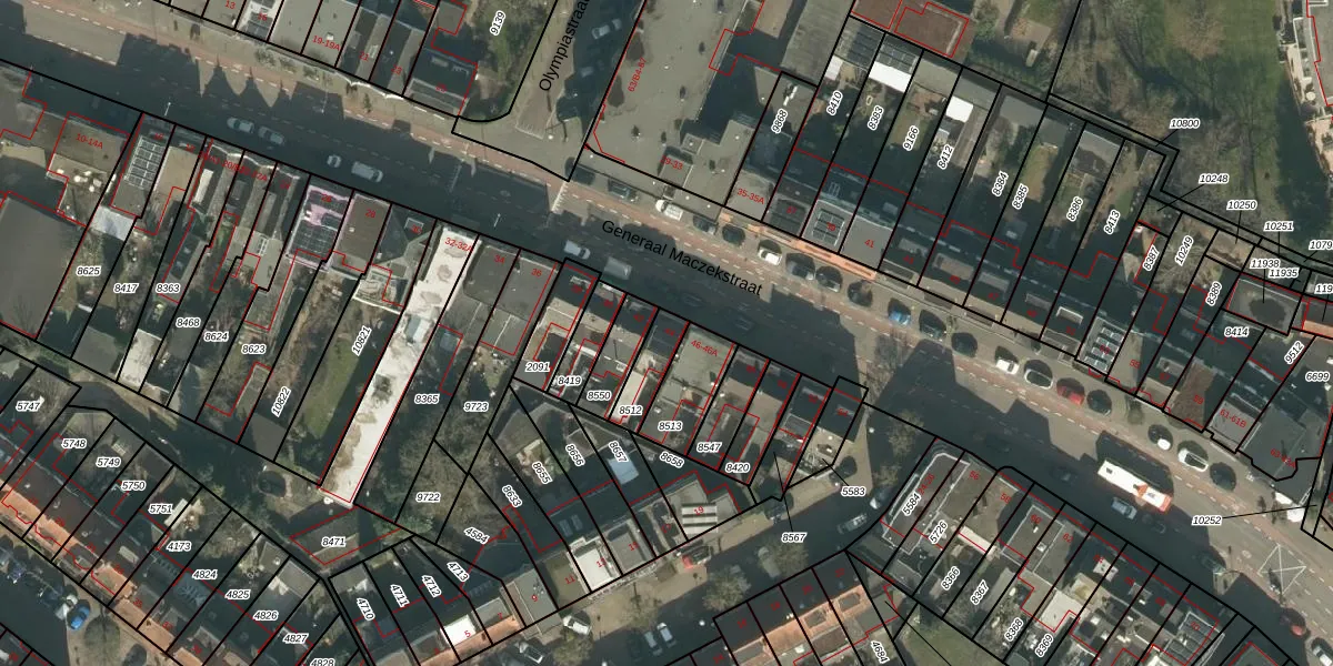 Generaal Maczekstraat 44 is gelegen op kadastraal perceel BDA00D8512. Deze kadastrale aanduiding is uniek en wordt gebruikt door het Kadaster om eigendomsrechten en andere zakelijke rechten vast te leggen. Het perceel maakt onderdeel uit van de kadastrale gemeente Breda.