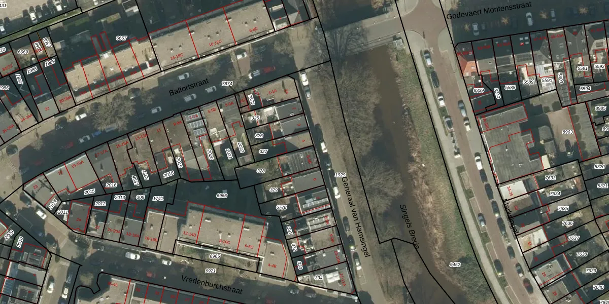 Het adres ligt op het perceel BDA00-E-328, dat zich in de kadastrale gemeente Breda bevindt. Het perceel is 201 m² groot. Dat is kleiner dan de gemiddelde perceeloppervlakte in Breda, dat op 1059,77 m² ligt. Het grootste perceel in de kadastrale gemeente is 44,1 ha. Het kleinste perceel heeft een oppervlakte van 0 m². Op het perceel liggen in totaal 3 adressen. In de Basisregistratie Kadaster (BRK) werden de grenzen van het perceel geregistreerd op 31-10-2006.