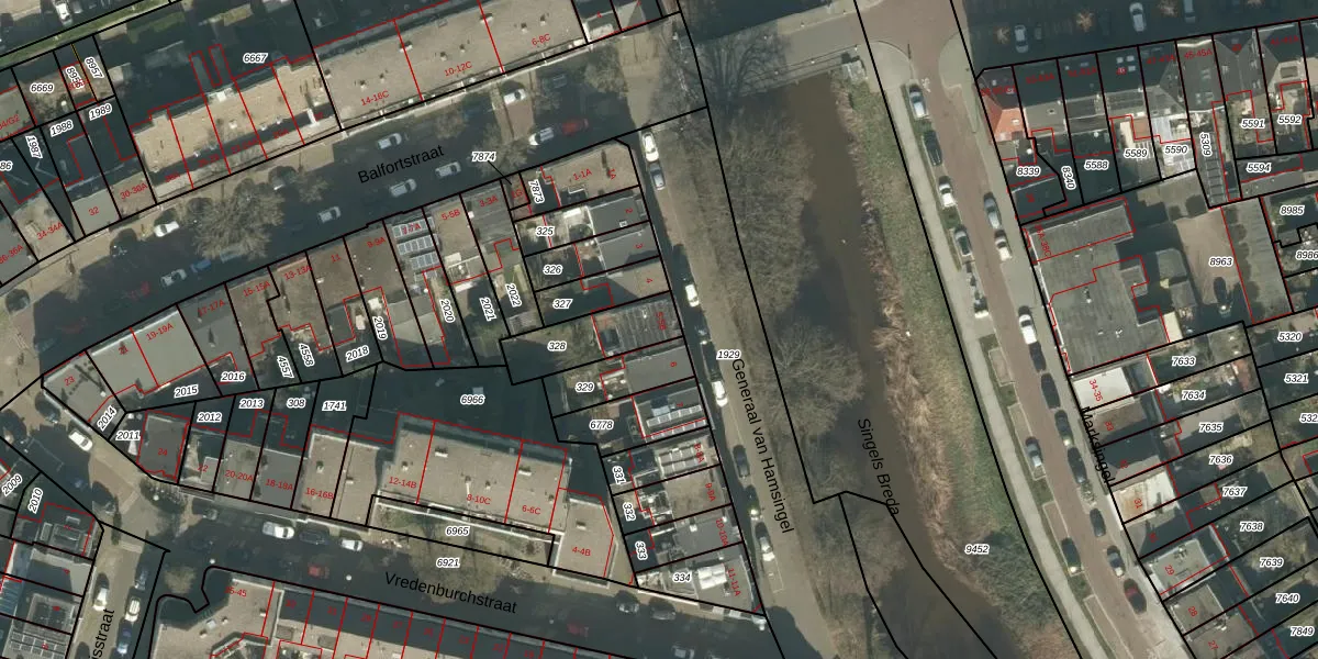 Generaal van Hamsingel 5-B is gelegen op kadastraal perceel BDA00E328. Deze kadastrale aanduiding is uniek en wordt gebruikt door het Kadaster om eigendomsrechten en andere zakelijke rechten vast te leggen. Het perceel maakt onderdeel uit van de kadastrale gemeente Breda.