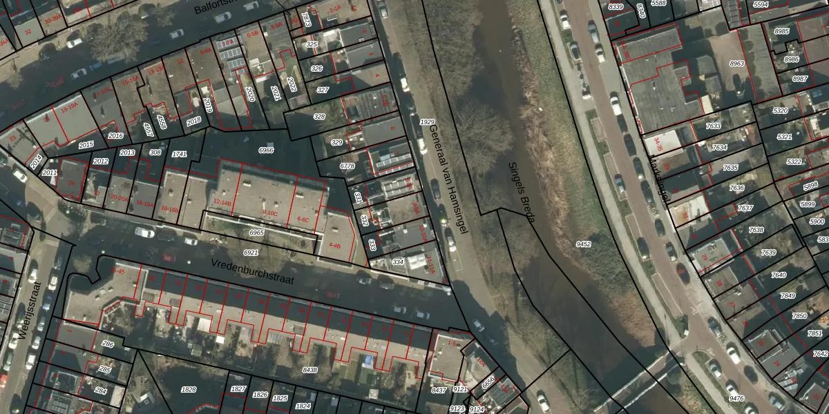 Het perceel waarop het adres ligt is BDA00-E-332. De afkorting 'BDA00' staat voor kadastrale gemeente Breda. De gemiddelde perceelgrootte in Breda is 1059,8 m². Dit perceel is kleiner: de perceeloppervlakte bedraagt 109 m². Het grootste perceel in de kadastrale gemeente is 44,1 ha. Het kleinste perceel heeft een oppervlakte van 0 m². Op het perceel zijn 2 adressen aanwezig. De laatste wijziging in het de Basisregistratie Kadaster (BRK) was op 31-10-2006.