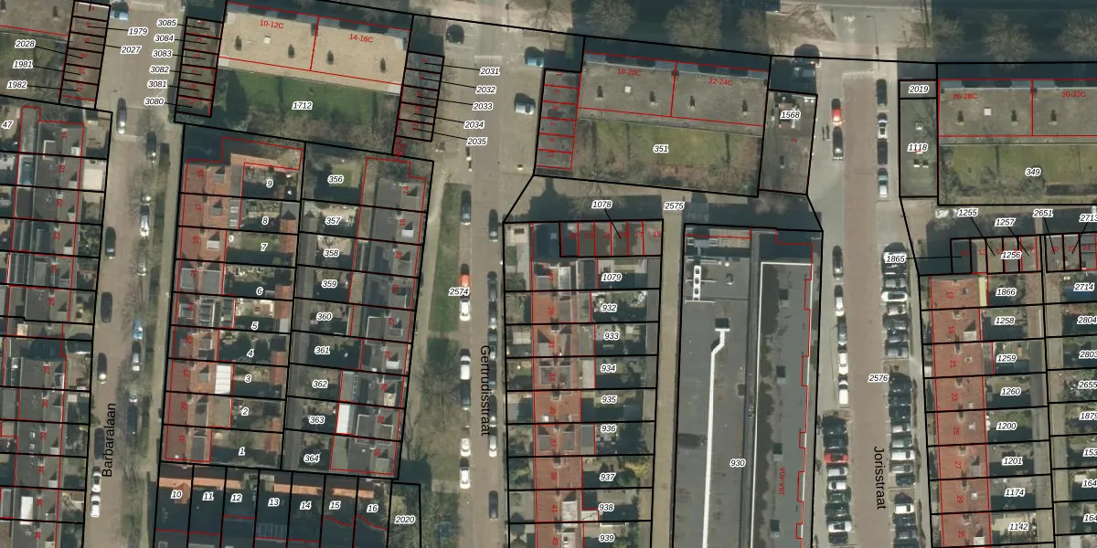 Het perceel waarop Gertrudisstraat 27 staat heeft een oppervlakte van 242 m². Dit is een middelgroot perceel. De perceeloppervlakte wordt geregistreerd door het Kadaster. Gedetailleerde informatie over de maten van dit perceel kunt u vinden in het rapport Kadastrale kaart met maatvoering van Gertrudisstraat 27.