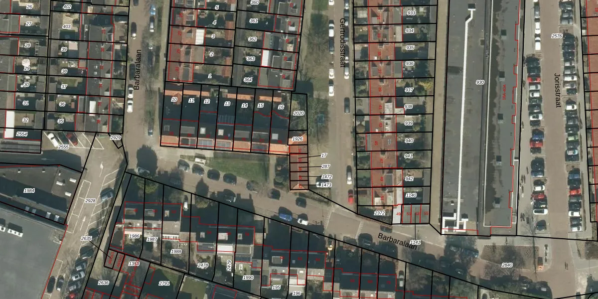 Het perceel waarop Gertrudisstraat 34 staat heeft een oppervlakte van 155 m². Dit is een middelgroot perceel. De perceeloppervlakte wordt geregistreerd door het Kadaster. Gedetailleerde informatie over de maten van dit perceel kunt u vinden in het rapport Kadastrale kaart met maatvoering van Gertrudisstraat 34.
