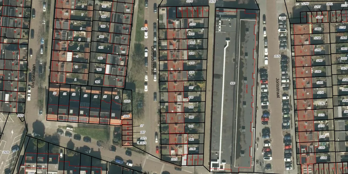 Het perceel waarop Gertrudisstraat 39 staat heeft een oppervlakte van 160 m². Dit is een middelgroot perceel. De perceeloppervlakte wordt geregistreerd door het Kadaster. Gedetailleerde informatie over de maten van dit perceel kunt u vinden in het rapport Kadastrale kaart met maatvoering van Gertrudisstraat 39.