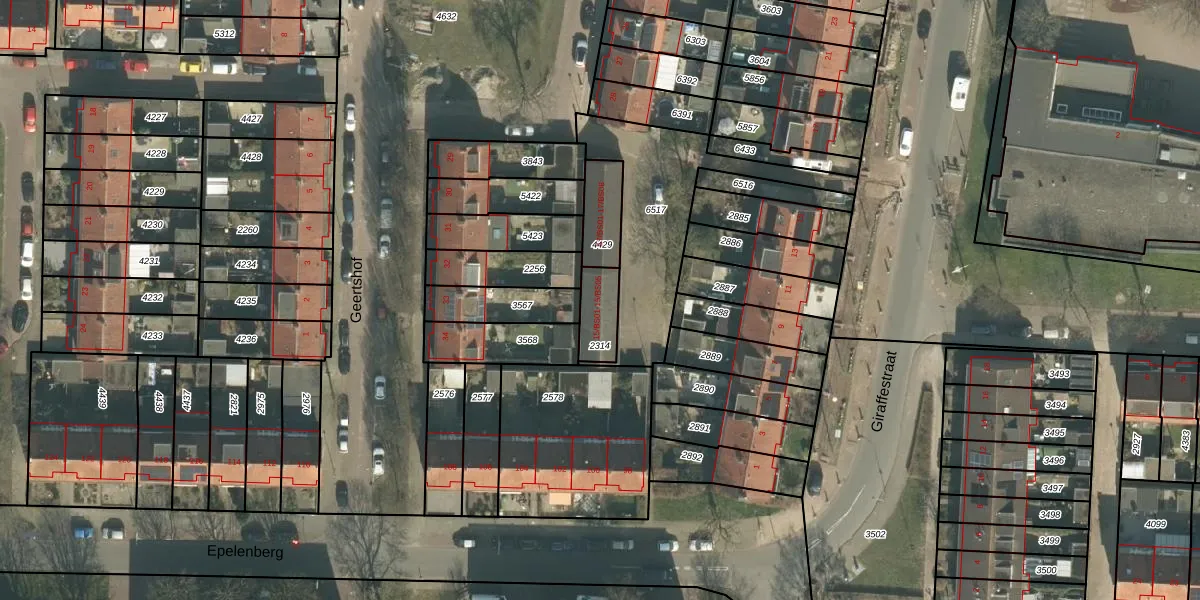 Het perceel waarop Giraffestraat 15-BS04 staat heeft een oppervlakte van 99 m². Dit is een klein perceel. De perceeloppervlakte wordt geregistreerd door het Kadaster. Gedetailleerde informatie over de maten van dit perceel kunt u vinden in het rapport Kadastrale kaart met maatvoering van Giraffestraat 15-BS04.