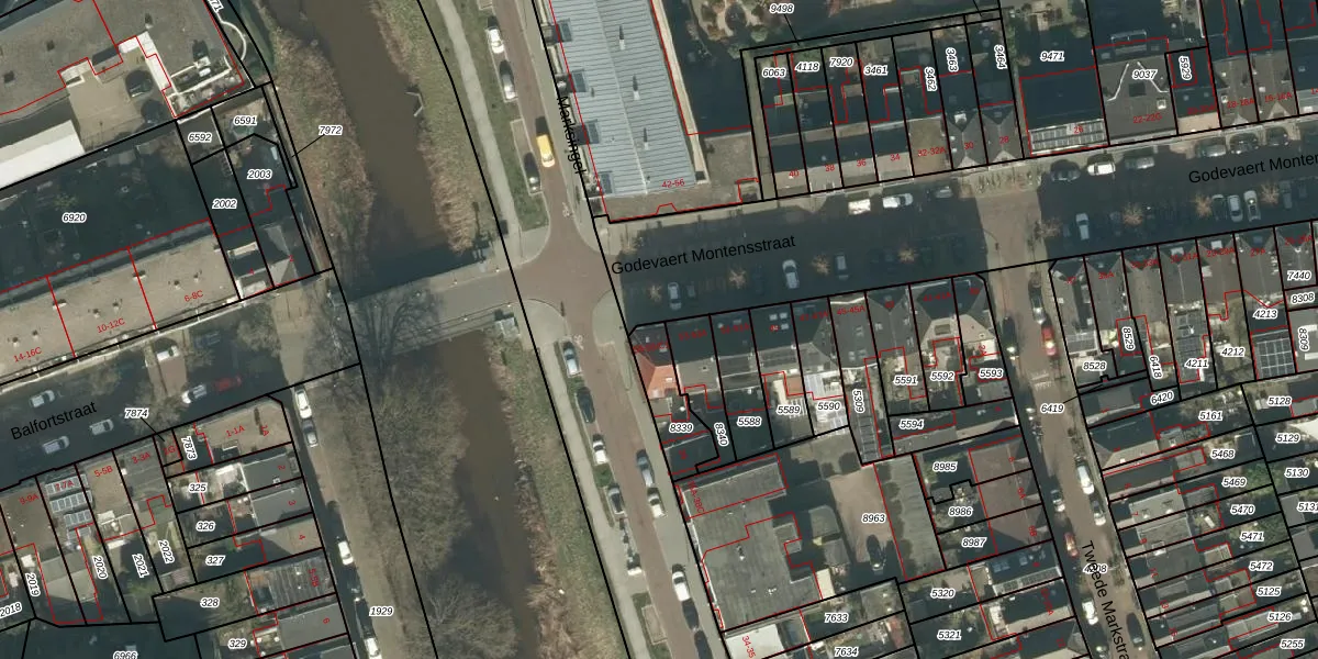 Godevaert Montensstraat 55-B1 is gelegen op kadastraal perceel BDA00A8339. Deze kadastrale aanduiding is uniek en wordt gebruikt door het Kadaster om eigendomsrechten en andere zakelijke rechten vast te leggen. Het perceel maakt onderdeel uit van de kadastrale gemeente Breda.