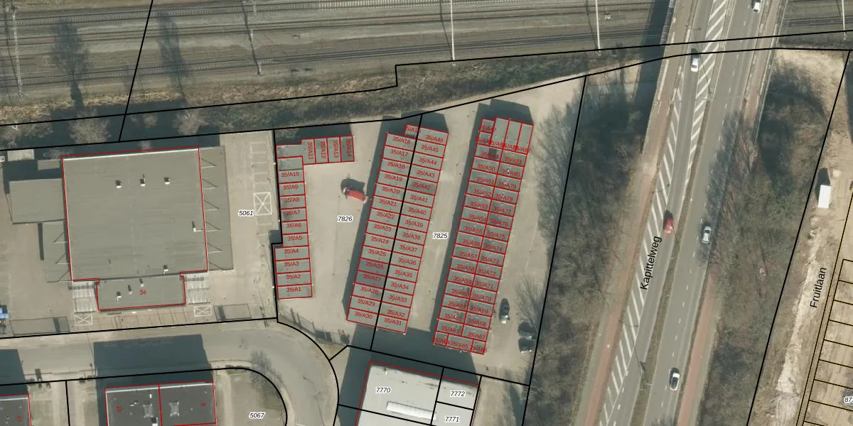 Het perceel waarop Goeseelsstraat 35-A40 staat heeft een oppervlakte van 2465 m². Dit is een zeer groot perceel. De perceeloppervlakte wordt geregistreerd door het Kadaster. Gedetailleerde informatie over de maten van dit perceel kunt u vinden in het rapport Kadastrale kaart met maatvoering van Goeseelsstraat 35-A40.
