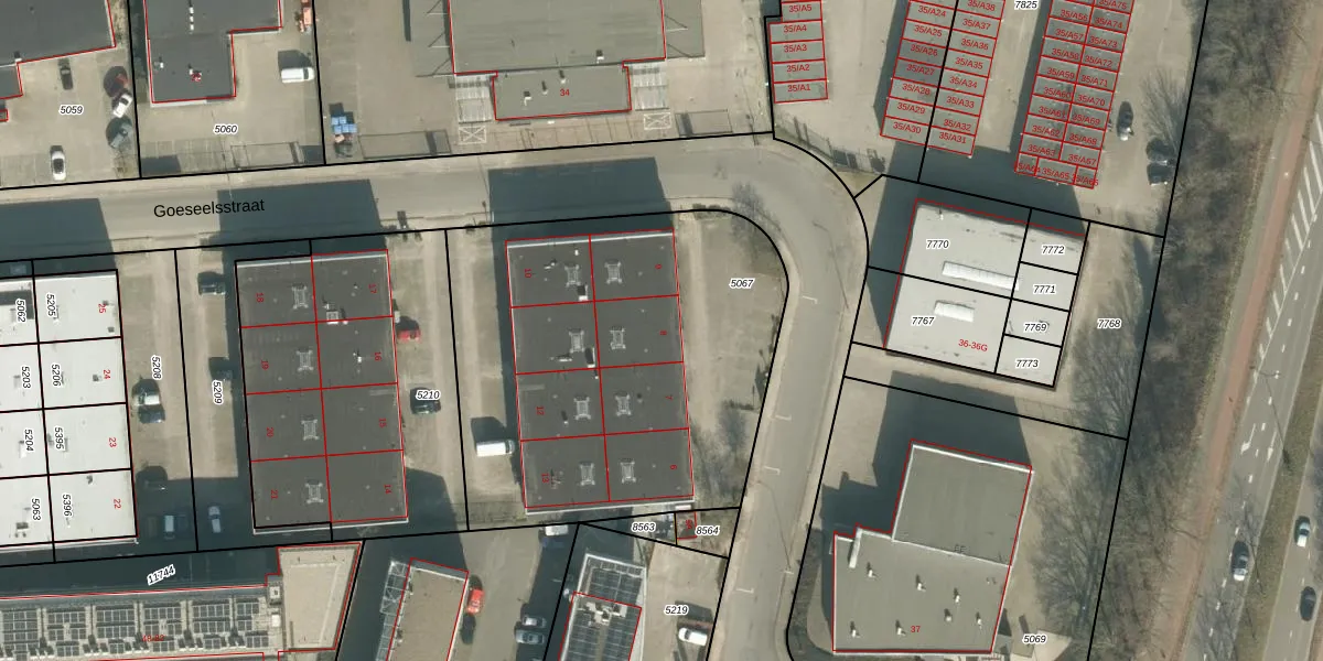 Het perceel waarop Goeseelsstraat 8 staat heeft een oppervlakte van 2140 m². Dit is een zeer groot perceel. De perceeloppervlakte wordt geregistreerd door het Kadaster. Gedetailleerde informatie over de maten van dit perceel kunt u vinden in het rapport Kadastrale kaart met maatvoering van Goeseelsstraat 8.