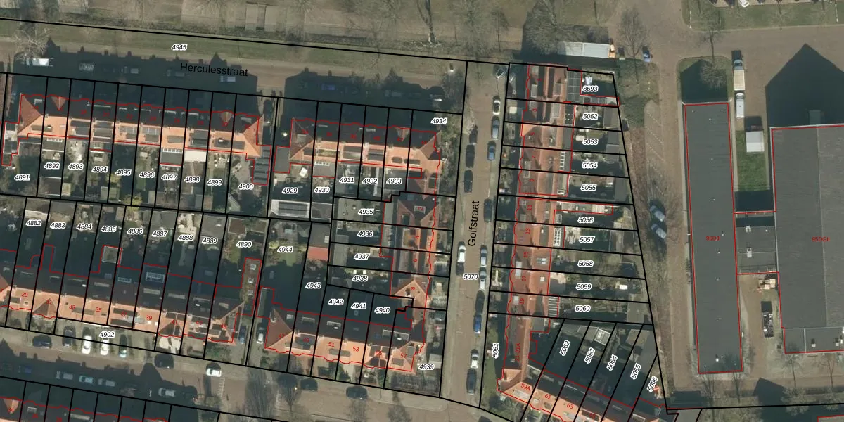 Gebruik de zoekbalk of klik op een perceel voor informatie over de adressen binnen dit perceel.
