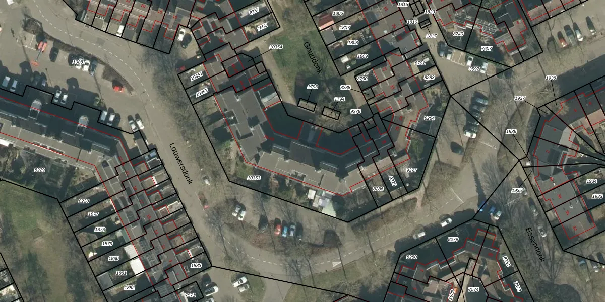 Het perceel waarop Gouddonk 34 staat heeft een oppervlakte van 1577 m². Dit is een zeer groot perceel. De perceeloppervlakte wordt geregistreerd door het Kadaster. Gedetailleerde informatie over de maten van dit perceel kunt u vinden in het rapport Kadastrale kaart met maatvoering van Gouddonk 34.