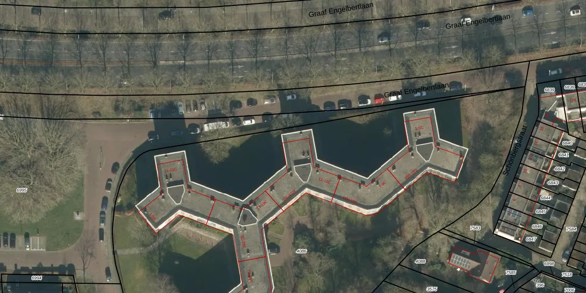 Graaf Engelbertlaan 13-A is gelegen op kadastraal perceel BDA00E4086. Deze kadastrale aanduiding is uniek en wordt gebruikt door het Kadaster om eigendomsrechten en andere zakelijke rechten vast te leggen. Het perceel maakt onderdeel uit van de kadastrale gemeente Breda.