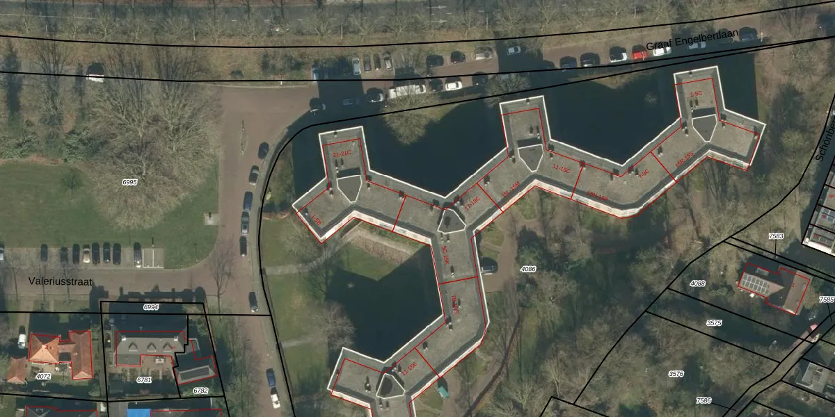 Graaf Engelbertlaan 19-B is gelegen op kadastraal perceel BDA00E4086. Deze kadastrale aanduiding is uniek en wordt gebruikt door het Kadaster om eigendomsrechten en andere zakelijke rechten vast te leggen. Het perceel maakt onderdeel uit van de kadastrale gemeente Breda.