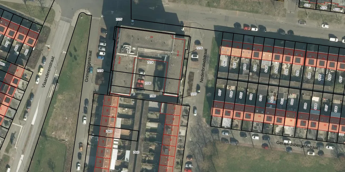 Grimmingestraat 108 is gelegen op kadastraal perceel BDA00G7236. Deze kadastrale aanduiding is uniek en wordt gebruikt door het Kadaster om eigendomsrechten en andere zakelijke rechten vast te leggen. Het perceel maakt onderdeel uit van de kadastrale gemeente Breda.