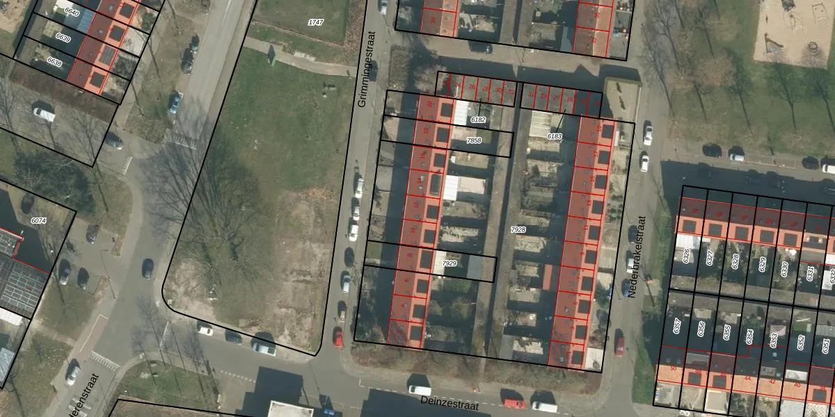 Het perceel waarop Grimmingestraat 12 staat heeft een oppervlakte van 3268 m². Dit is een zeer groot perceel. De perceeloppervlakte wordt geregistreerd door het Kadaster. Gedetailleerde informatie over de maten van dit perceel kunt u vinden in het rapport Kadastrale kaart met maatvoering van Grimmingestraat 12.