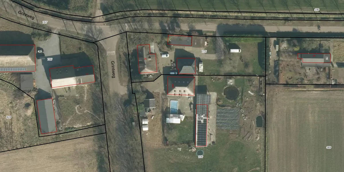Het perceel waarop Grintweg 18-A staat heeft een oppervlakte van 6245 m². Dit is een zeer groot perceel. De perceeloppervlakte wordt geregistreerd door het Kadaster. Gedetailleerde informatie over de maten van dit perceel kunt u vinden in het rapport Kadastrale kaart met maatvoering van Grintweg 18-A.