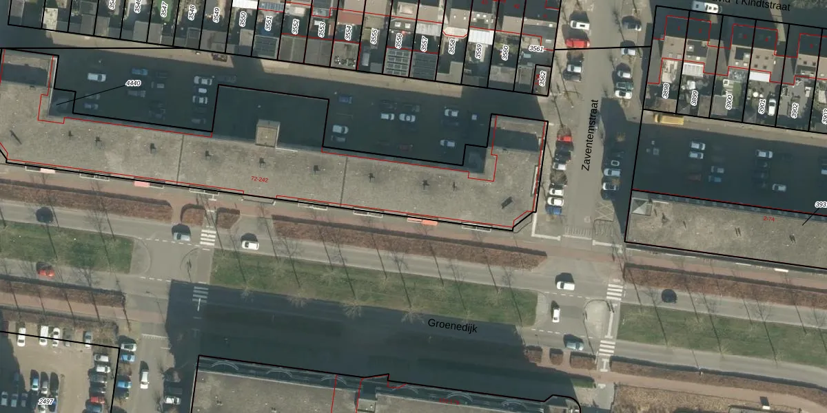 Het perceel waarop Groenedijk 102 staat heeft een oppervlakte van 2574 m². Dit is een zeer groot perceel. De perceeloppervlakte wordt geregistreerd door het Kadaster. Gedetailleerde informatie over de maten van dit perceel kunt u vinden in het rapport Kadastrale kaart met maatvoering van Groenedijk 102.