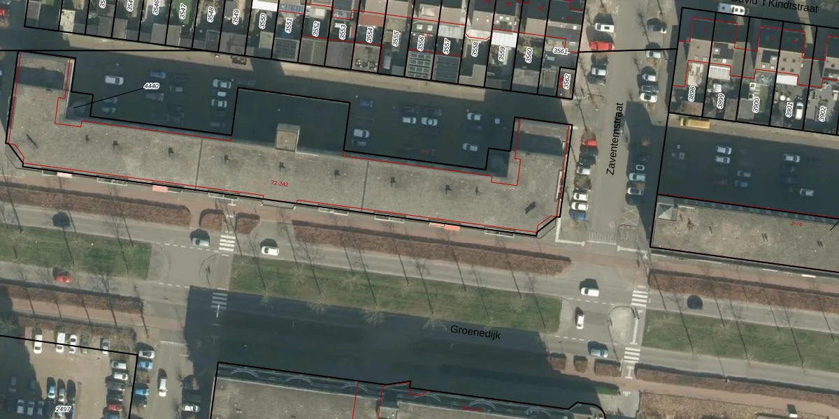 Het perceel waarop Groenedijk 108 staat heeft een oppervlakte van 2574 m². Dit is een zeer groot perceel. De perceeloppervlakte wordt geregistreerd door het Kadaster. Gedetailleerde informatie over de maten van dit perceel kunt u vinden in het rapport Kadastrale kaart met maatvoering van Groenedijk 108.