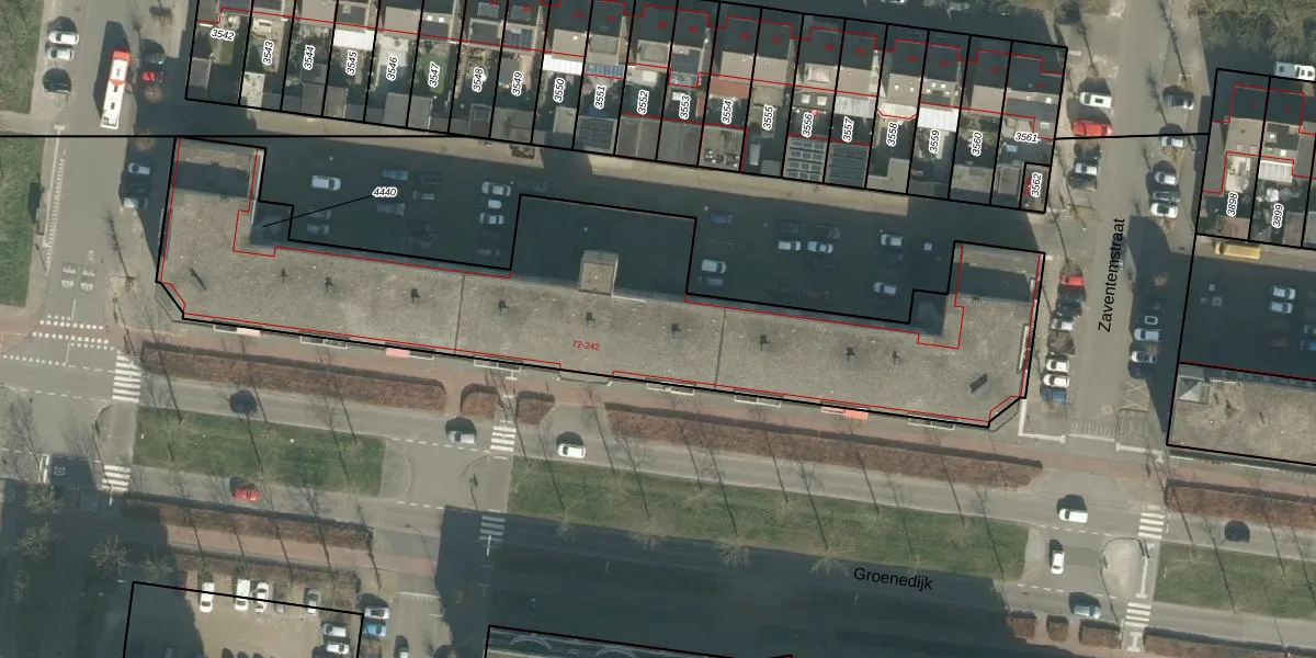 Het perceel waarop Groenedijk 140 staat heeft een oppervlakte van 2574 m². Dit is een zeer groot perceel. De perceeloppervlakte wordt geregistreerd door het Kadaster. Gedetailleerde informatie over de maten van dit perceel kunt u vinden in het rapport Kadastrale kaart met maatvoering van Groenedijk 140.