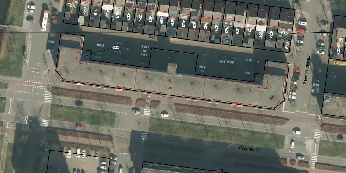 Het perceel waarop Groenedijk 154 staat heeft een oppervlakte van 2574 m². Dit is een zeer groot perceel. De perceeloppervlakte wordt geregistreerd door het Kadaster. Gedetailleerde informatie over de maten van dit perceel kunt u vinden in het rapport Kadastrale kaart met maatvoering van Groenedijk 154.