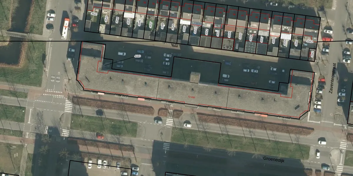 Het perceel waarop Groenedijk 170 staat heeft een oppervlakte van 2574 m². Dit is een zeer groot perceel. De perceeloppervlakte wordt geregistreerd door het Kadaster. Gedetailleerde informatie over de maten van dit perceel kunt u vinden in het rapport Kadastrale kaart met maatvoering van Groenedijk 170.