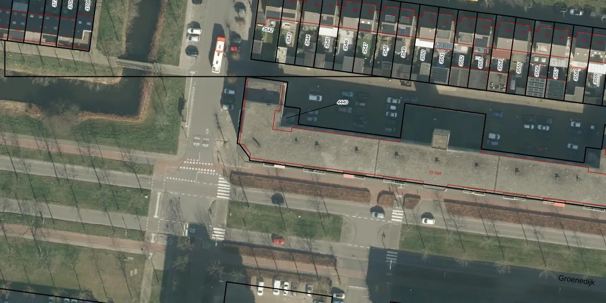 Het perceel waarop Groenedijk 226 staat heeft een oppervlakte van 2574 m². Dit is een zeer groot perceel. De perceeloppervlakte wordt geregistreerd door het Kadaster. Gedetailleerde informatie over de maten van dit perceel kunt u vinden in het rapport Kadastrale kaart met maatvoering van Groenedijk 226.