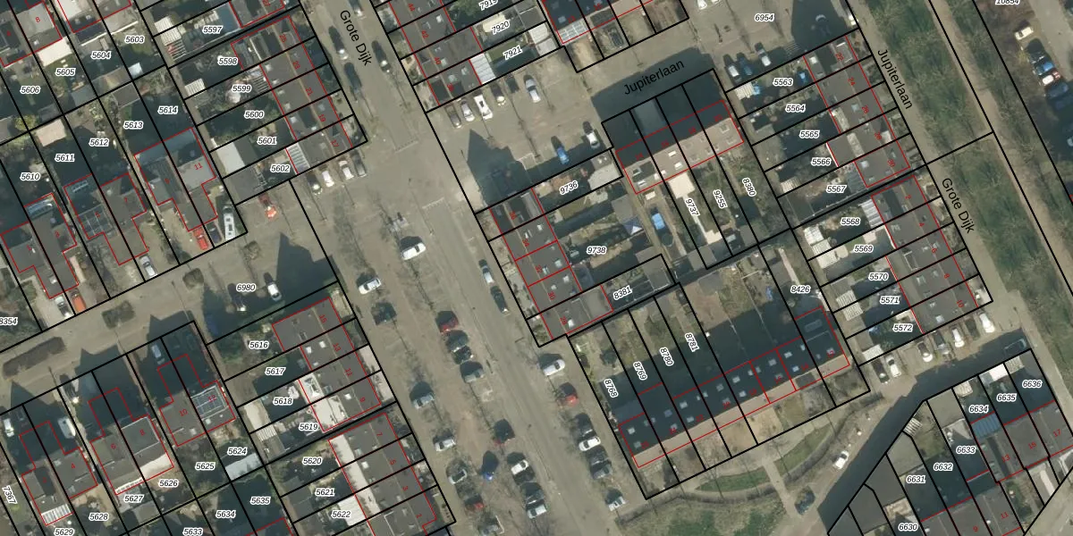 Het perceel waarop Grote Dijk 32 staat heeft een oppervlakte van 1210 m². Dit is een zeer groot perceel. De perceeloppervlakte wordt geregistreerd door het Kadaster. Gedetailleerde informatie over de maten van dit perceel kunt u vinden in het rapport Kadastrale kaart met maatvoering van Grote Dijk 32.