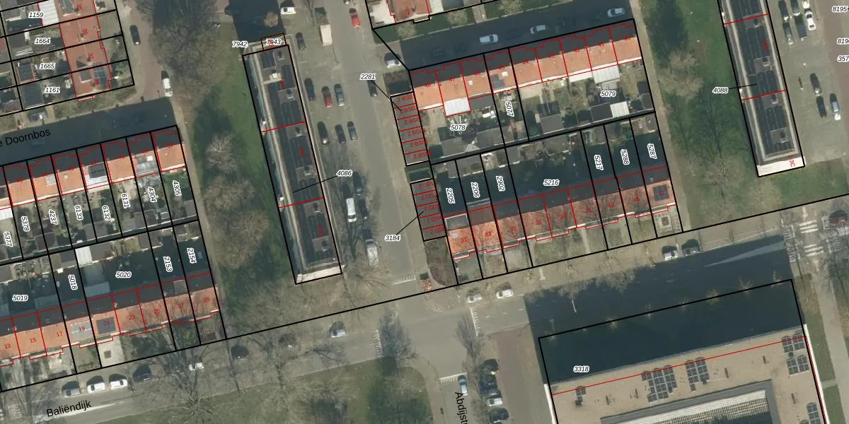 Grote Doornbos 2-G03 is gelegen op kadastraal perceel BDA00G3184. Deze kadastrale aanduiding is uniek en wordt gebruikt door het Kadaster om eigendomsrechten en andere zakelijke rechten vast te leggen. Het perceel maakt onderdeel uit van de kadastrale gemeente Breda.