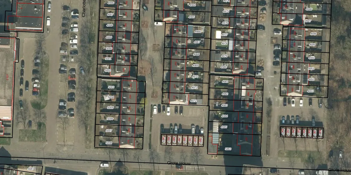 Grote Houw 277 is gelegen op kadastraal perceel GNK02A4971. Deze kadastrale aanduiding is uniek en wordt gebruikt door het Kadaster om eigendomsrechten en andere zakelijke rechten vast te leggen. Het perceel maakt onderdeel uit van de kadastrale gemeente Ginneken.