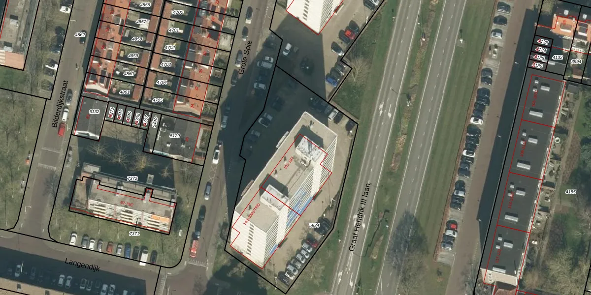 Grote Spie 107 is gelegen op kadastraal perceel BDA00E5934. Deze kadastrale aanduiding is uniek en wordt gebruikt door het Kadaster om eigendomsrechten en andere zakelijke rechten vast te leggen. Het perceel maakt onderdeel uit van de kadastrale gemeente Breda.