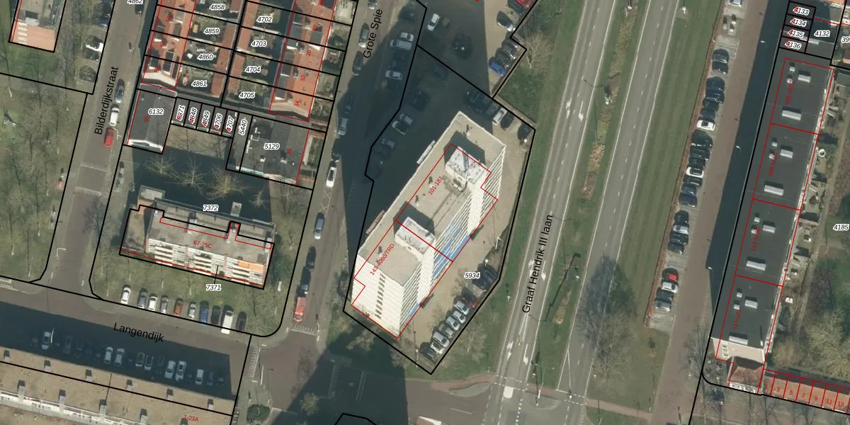 Het perceel waarop Grote Spie 133 staat heeft een oppervlakte van 2060 m². Dit is een zeer groot perceel. De perceeloppervlakte wordt geregistreerd door het Kadaster. Gedetailleerde informatie over de maten van dit perceel kunt u vinden in het rapport Kadastrale kaart met maatvoering van Grote Spie 133.