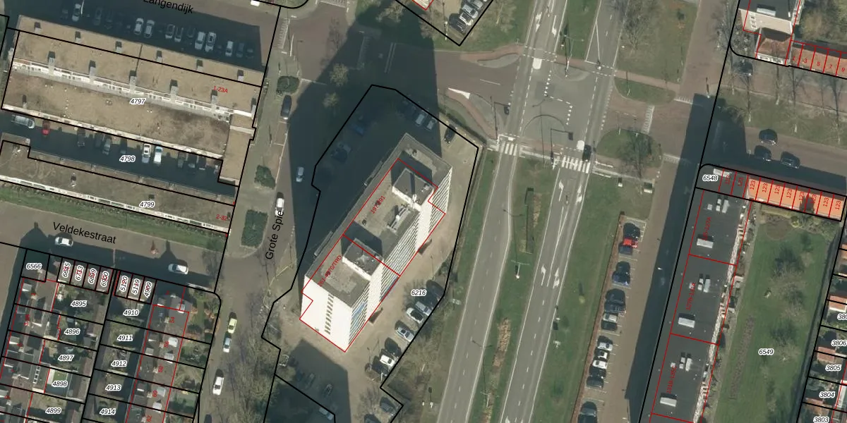 Grote Spie 199 is gelegen op kadastraal perceel BDA00E6216. Deze kadastrale aanduiding is uniek en wordt gebruikt door het Kadaster om eigendomsrechten en andere zakelijke rechten vast te leggen. Het perceel maakt onderdeel uit van de kadastrale gemeente Breda.