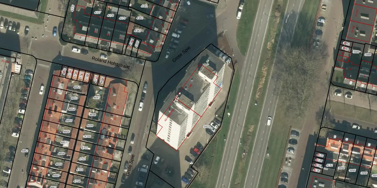 Grote Spie 33 is gelegen op kadastraal perceel BDA00E5933. Deze kadastrale aanduiding is uniek en wordt gebruikt door het Kadaster om eigendomsrechten en andere zakelijke rechten vast te leggen. Het perceel maakt onderdeel uit van de kadastrale gemeente Breda.