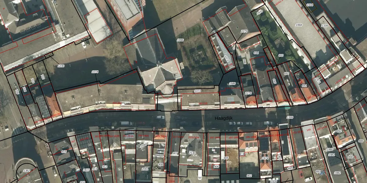 Haagdijk 186 is gelegen op kadastraal perceel BDA00F1073. Deze kadastrale aanduiding is uniek en wordt gebruikt door het Kadaster om eigendomsrechten en andere zakelijke rechten vast te leggen. Het perceel maakt onderdeel uit van de kadastrale gemeente Breda.