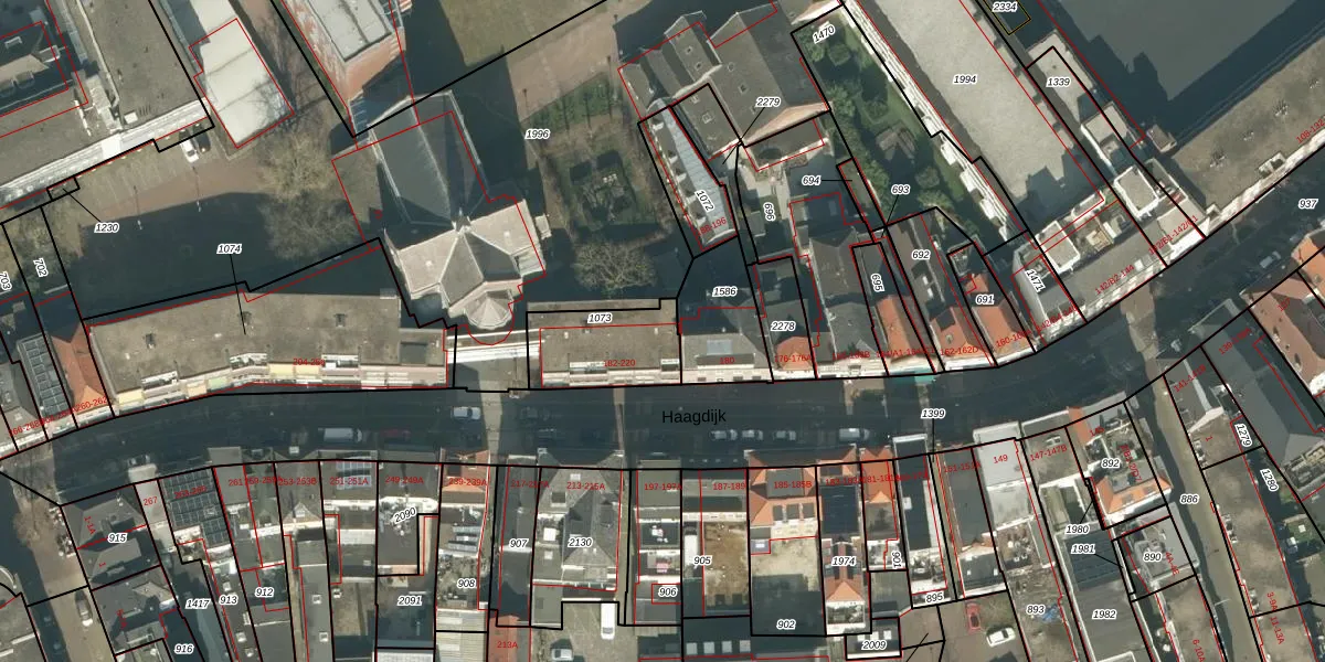 Haagdijk 216 is gelegen op kadastraal perceel BDA00F1073. Deze kadastrale aanduiding is uniek en wordt gebruikt door het Kadaster om eigendomsrechten en andere zakelijke rechten vast te leggen. Het perceel maakt onderdeel uit van de kadastrale gemeente Breda.