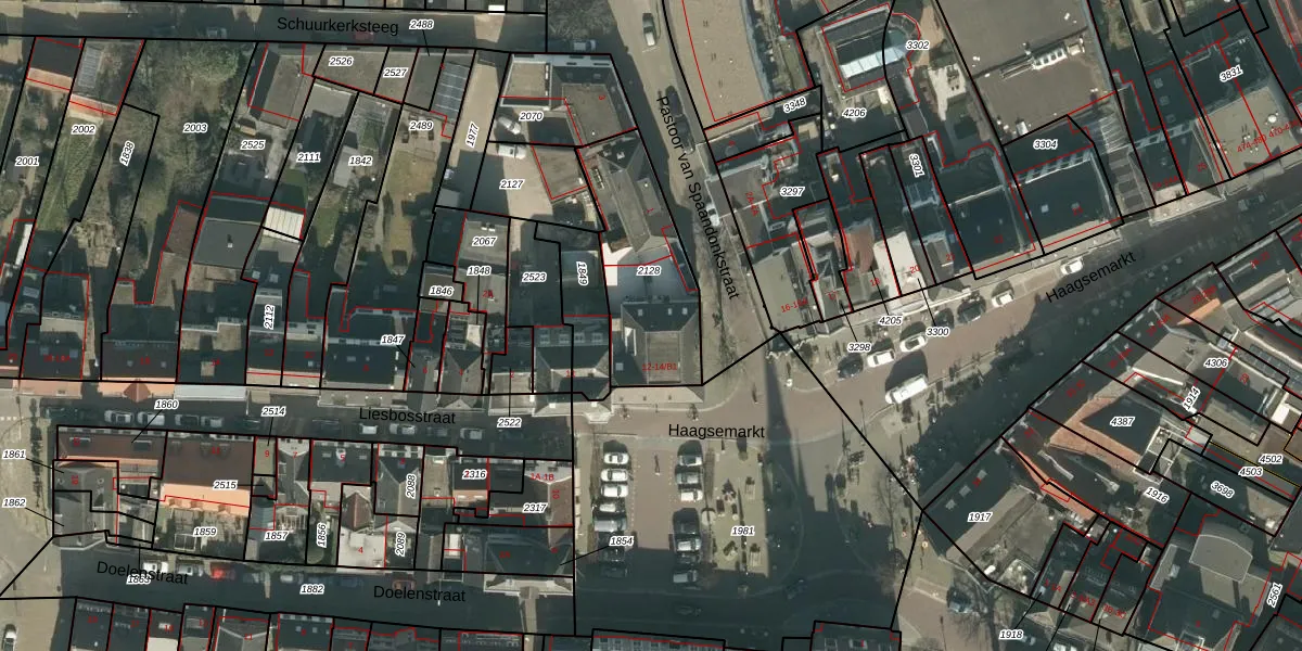 Haagsemarkt 14-B1 is gelegen op kadastraal perceel PCH00F2128. Deze kadastrale aanduiding is uniek en wordt gebruikt door het Kadaster om eigendomsrechten en andere zakelijke rechten vast te leggen. Het perceel maakt onderdeel uit van de kadastrale gemeente Princenhage.