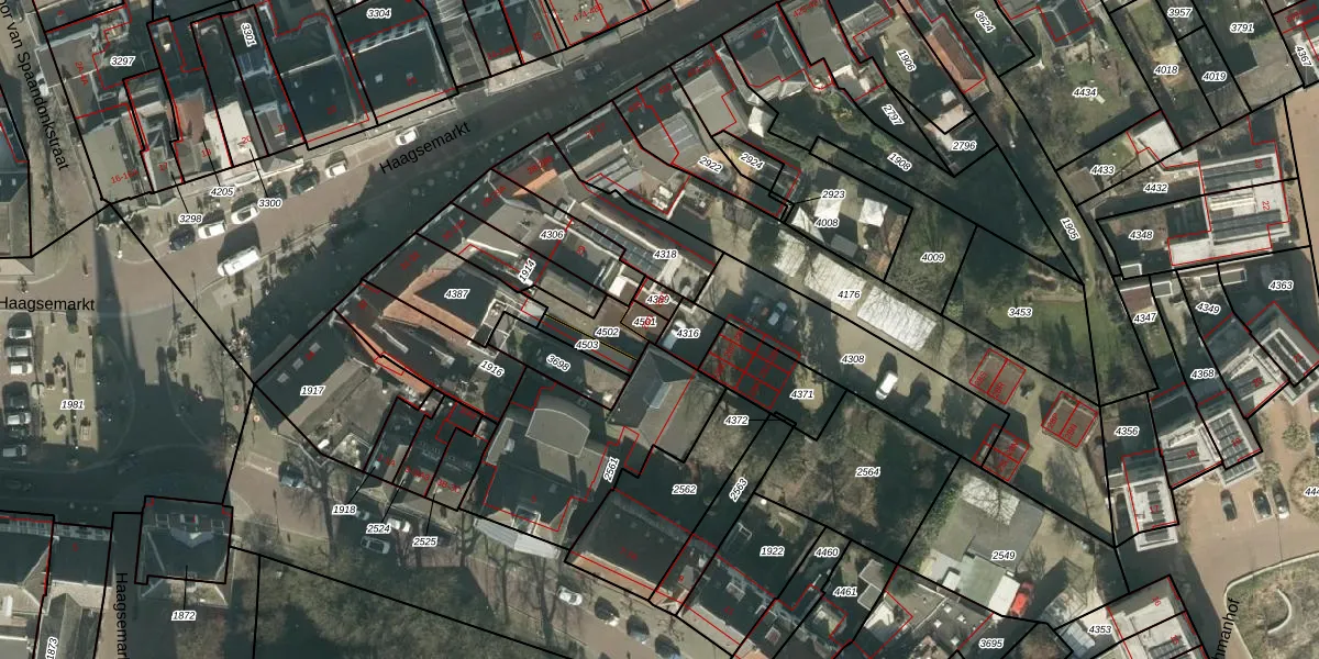 Haagsemarkt 28-D is gelegen op kadastraal perceel PCH00N4501. Deze kadastrale aanduiding is uniek en wordt gebruikt door het Kadaster om eigendomsrechten en andere zakelijke rechten vast te leggen. Het perceel maakt onderdeel uit van de kadastrale gemeente Princenhage.