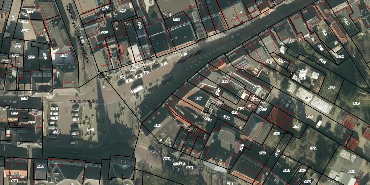Haagsemarkt 32 is gelegen op kadastraal perceel PCH00N4387. Deze kadastrale aanduiding is uniek en wordt gebruikt door het Kadaster om eigendomsrechten en andere zakelijke rechten vast te leggen. Het perceel maakt onderdeel uit van de kadastrale gemeente Princenhage.