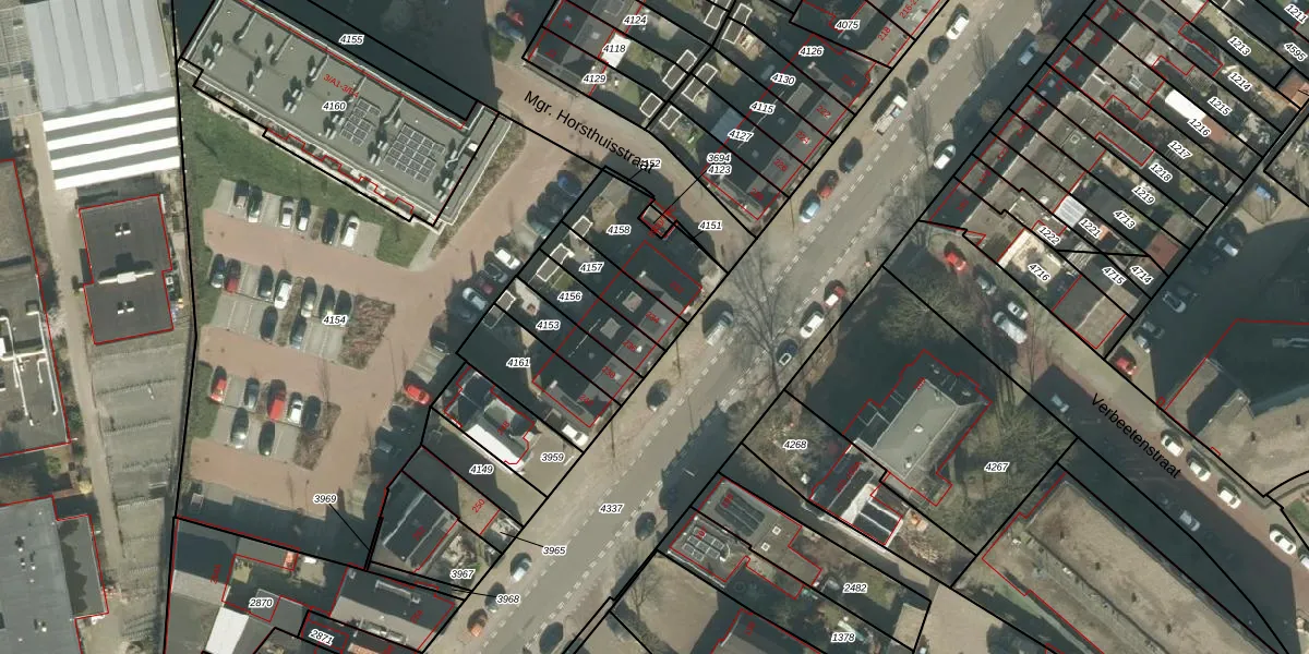 Gebruik de zoekbalk of klik op een perceel voor informatie over de adressen binnen dit perceel.