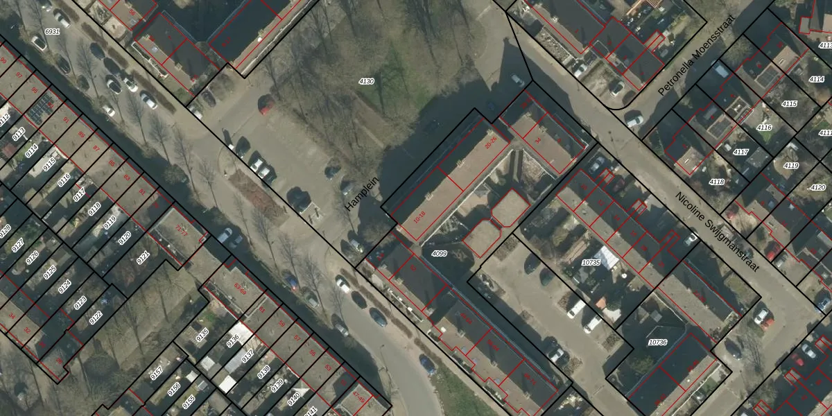 Hamplein 12 is gelegen op kadastraal perceel BDA00H4099. Deze kadastrale aanduiding is uniek en wordt gebruikt door het Kadaster om eigendomsrechten en andere zakelijke rechten vast te leggen. Het perceel maakt onderdeel uit van de kadastrale gemeente Breda.